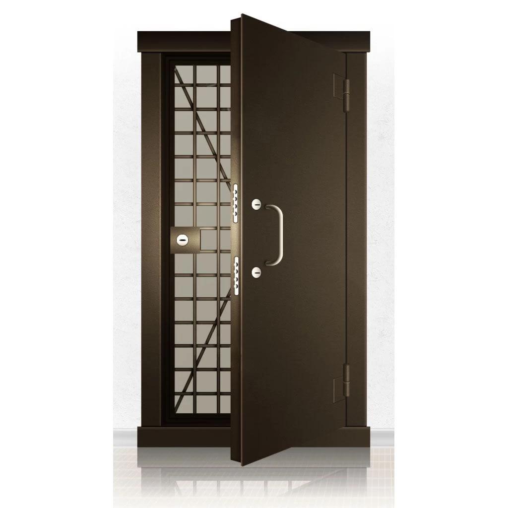 Металлические двери КХО и КХН представляют собой входные блоки, обладающие высоким уровнем взломостойкости и состоят из трех основных элементов: усиленного каркаса, сплошного металлического полотна и решетчатой двери. Дверной блок изготавливается из стального уголка 100*100 мм. Места крепления блока к стене цементируются и закрываются стальными наличниками шириной 40 мм. Крепеж заходит вглубь стены на 80 мм. В конструкции внешней створки монтируются ребра жесткости, для обшивки используется сталь толщиной не менее 3 мм. Внутренняя решетка изготавливается из прутка диаметром 16 мм. Размер ячеек решетки должен составлять не более 15 на 15 см. В точках пересечения прутья надежно приваривают друг к другу. В КХО и КХН необходимо поддерживать определенную температуру и влажность. Для этого внутреннее пространство глухой двери заполняется теплоизоляционным материалом, а по периметру двери приклеивается уплотнитель. Такие двери оборудуются замками с повышенным уровнем взломостойкости. Специализированные двери КХО и КХН в Якутске могут быть оснащены сигнализацией, в конструкции могут быть проушины для навесного замка и элементами для опечатывания. Если идет речь о двери в комнату хранения оружия, в створке оборудуется окно для выдачи оружия и спец. средств, которое накрывается стальной дверцей.