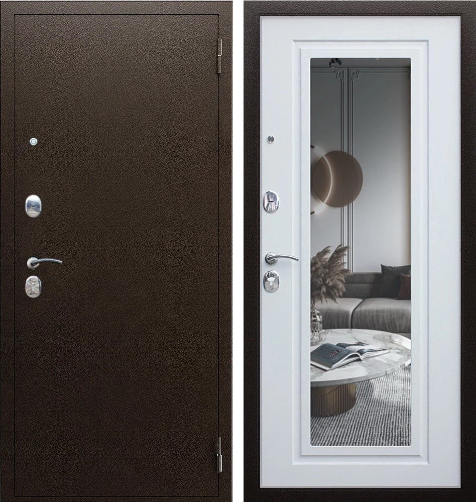Надежная входная Дверь Комфорт с зеркалом премиум класса по цене 34 260 руб. Большая толщина стали защитит от проникновения в ваш дом, квартиру или коттедж. Используется очень качественная фурнитура: замки, цилиндры, ручки, защелки. Покрытие и отделка двери изготовлено под внимательным контролем производителя. Дверь имеет долгий срок службы и гарантию.