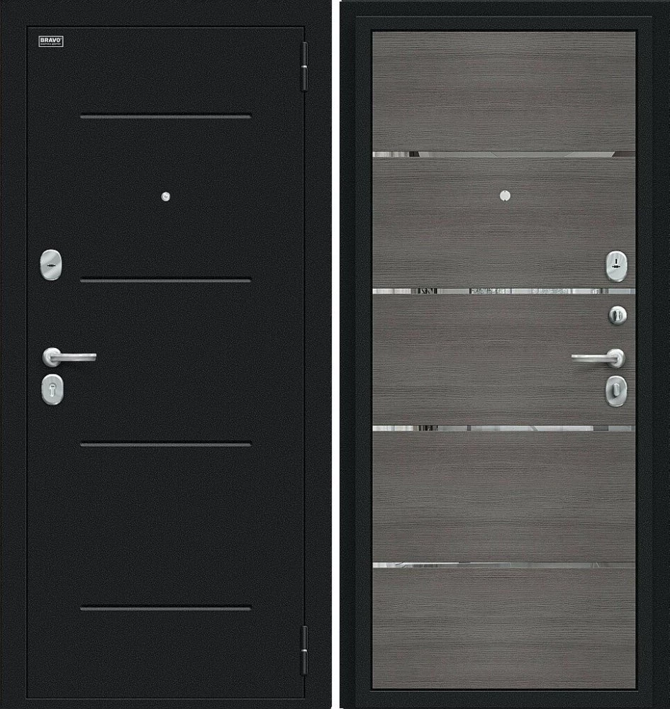 Надежная входная Дверь Браво Лайн Букле черное/Grey Melinga премиум класса по цене 35 830 руб. Большая толщина стали защитит от проникновения в ваш дом, квартиру или коттедж. Используется очень качественная фурнитура: замки, цилиндры, ручки, защелки. Покрытие и отделка двери изготовлено под внимательным контролем производителя. Дверь имеет долгий срок службы и гарантию.