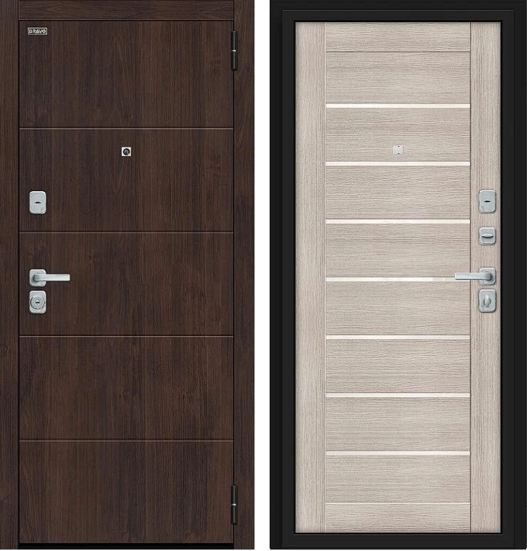 Надежная входная Дверь Браво Прайм/BChrome Almon/Cappuccino Melinga премиум класса по цене 45 610 руб. Большая толщина стали защитит от проникновения в ваш дом, квартиру или коттедж. Используется очень качественная фурнитура: замки, цилиндры, ручки, защелки. Покрытие и отделка двери изготовлено под внимательным контролем производителя. Дверь имеет долгий срок службы и гарантию.