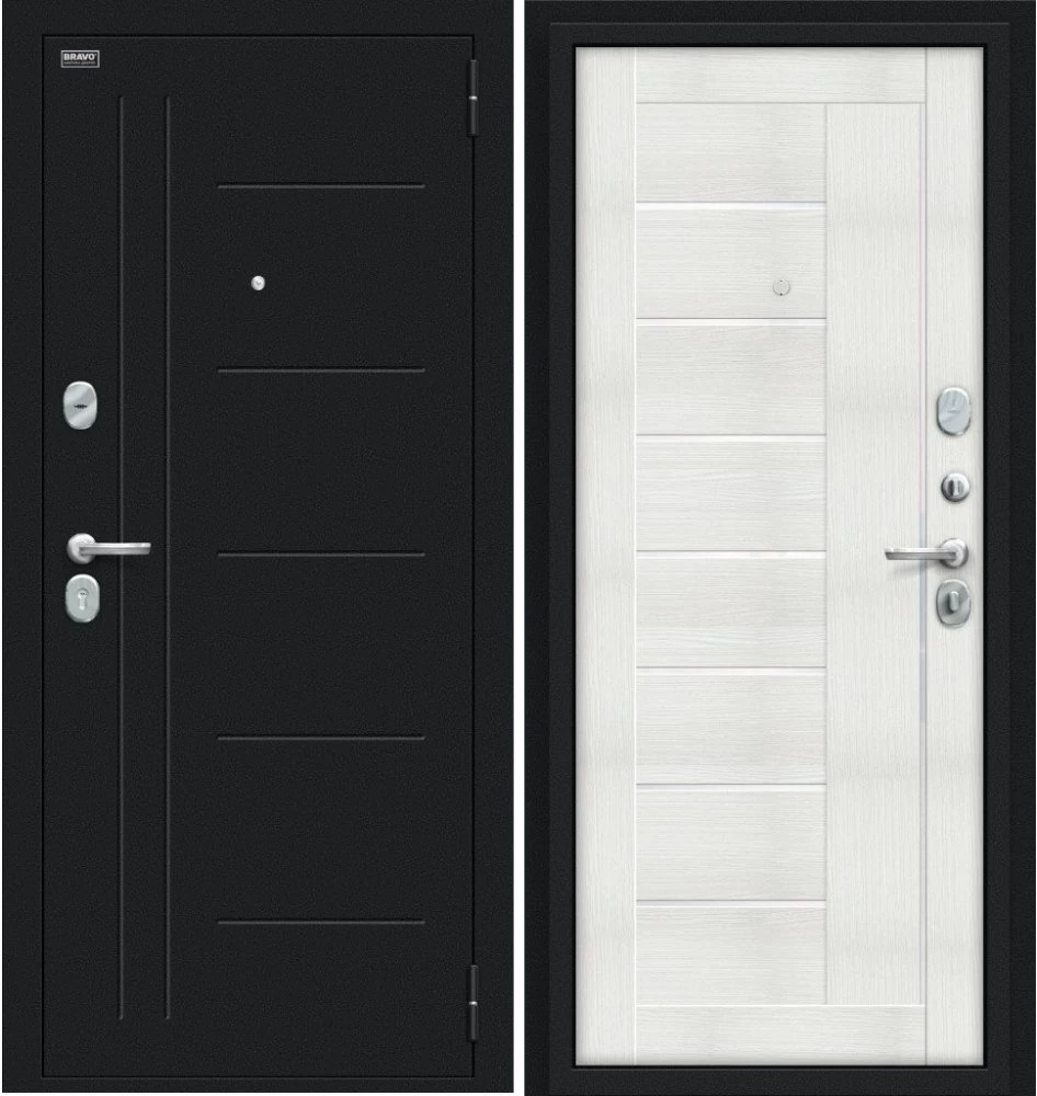 Надежная входная Дверь Браво Проф Букле черное/Bianco Veralinga премиум класса по цене 38 710 руб. Большая толщина стали защитит от проникновения в ваш дом, квартиру или коттедж. Используется очень качественная фурнитура: замки, цилиндры, ручки, защелки. Покрытие и отделка двери изготовлено под внимательным контролем производителя. Дверь имеет долгий срок службы и гарантию.