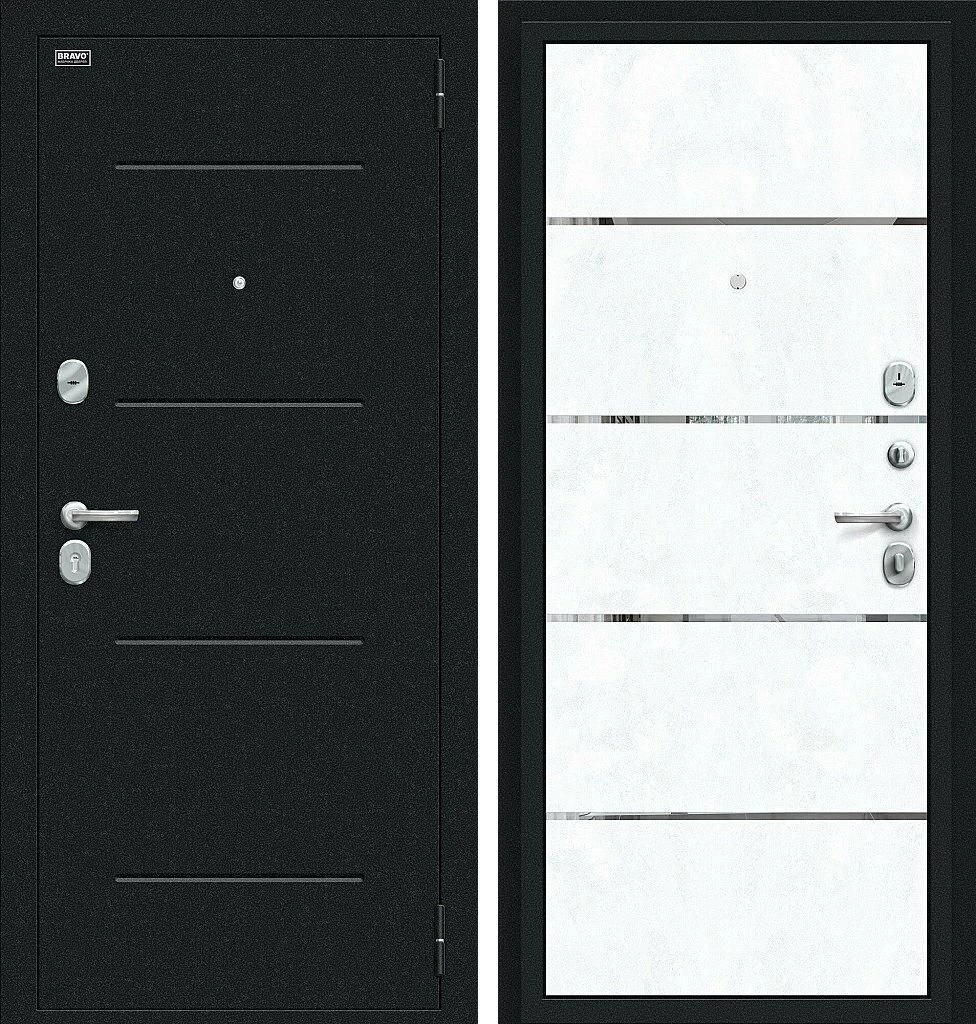 Надежная входная Входная дверь Лайн Букле черное/Snow Art BR4633 премиум класса по цене 36 308 руб. Большая толщина стали защитит от проникновения в ваш дом, квартиру или коттедж. Используется очень качественная фурнитура: замки, цилиндры, ручки, защелки. Покрытие и отделка двери изготовлено под внимательным контролем производителя. Дверь имеет долгий срок службы и гарантию.