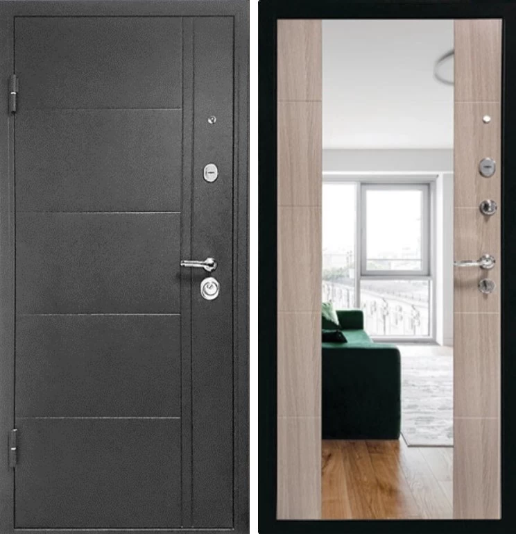 Надежная входная Дверь Эверест Зеркало Сандал Серый премиум класса по цене 39 540 руб. Большая толщина стали защитит от проникновения в ваш дом, квартиру или коттедж. Используется очень качественная фурнитура: замки, цилиндры, ручки, защелки. Покрытие и отделка двери изготовлено под внимательным контролем производителя. Дверь имеет долгий срок службы и гарантию.