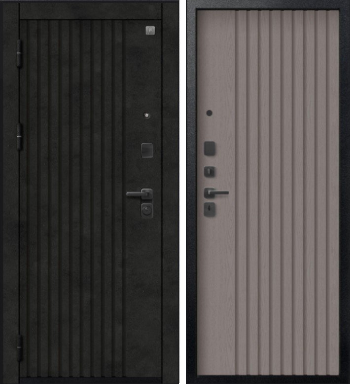 Надежная входная Дверь V-15 Черный муар + Бетон темный - Софт ясень грей премиум класса по цене 49 560 руб. Большая толщина стали защитит от проникновения в ваш дом, квартиру или коттедж. Используется очень качественная фурнитура: замки, цилиндры, ручки, защелки. Покрытие и отделка двери изготовлено под внимательным контролем производителя. Дверь имеет долгий срок службы и гарантию.