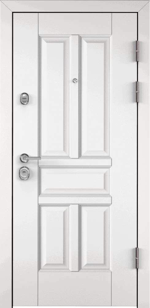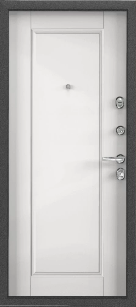Надежная входная Дверь Цербер 3К Чёрный муар Мистраль Белый Сменная панель премиум класса по цене 48 260 руб. Большая толщина стали защитит от проникновения в ваш дом, квартиру или коттедж. Используется очень качественная фурнитура: замки, цилиндры, ручки, защелки. Покрытие и отделка двери изготовлено под внимательным контролем производителя. Дверь имеет долгий срок службы и гарантию.
